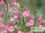 (Elk Twilight's Rosy Glow Jame Sage) Rosy red hairs accentuate the upper lip of each dusky, salmon-pink blossom of this cheery Jame Sage. The flowers are tiny but abundant and are supported by bright green calyxes.
